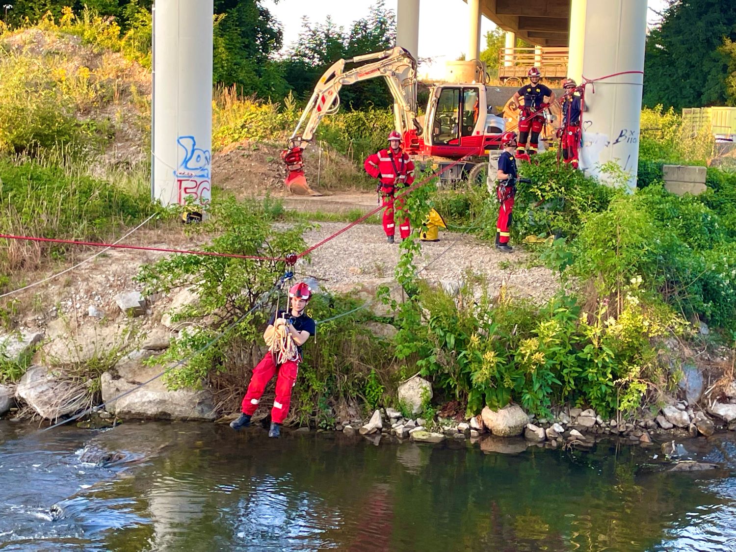 Im Rahmen der Übung wurden zwei verschiedene (Schräg-) Seilbahnen beübt. Die Übung verlief erfolgreich, alle Ziele konnten erreicht werden. Besonderes Augenmerk wurde auf Kommunikation, Eigensicherung und den sicheren Umgang mit Material und Gerät gelegt.