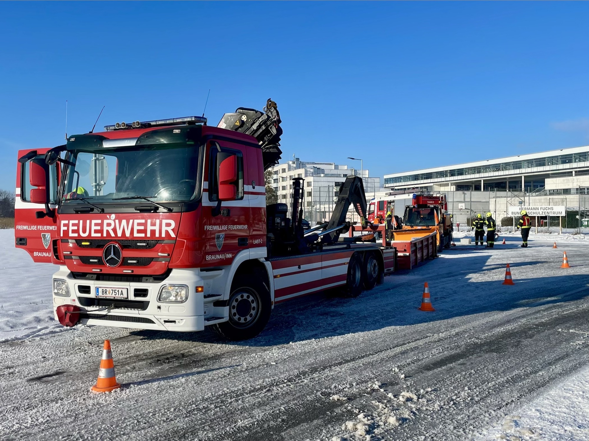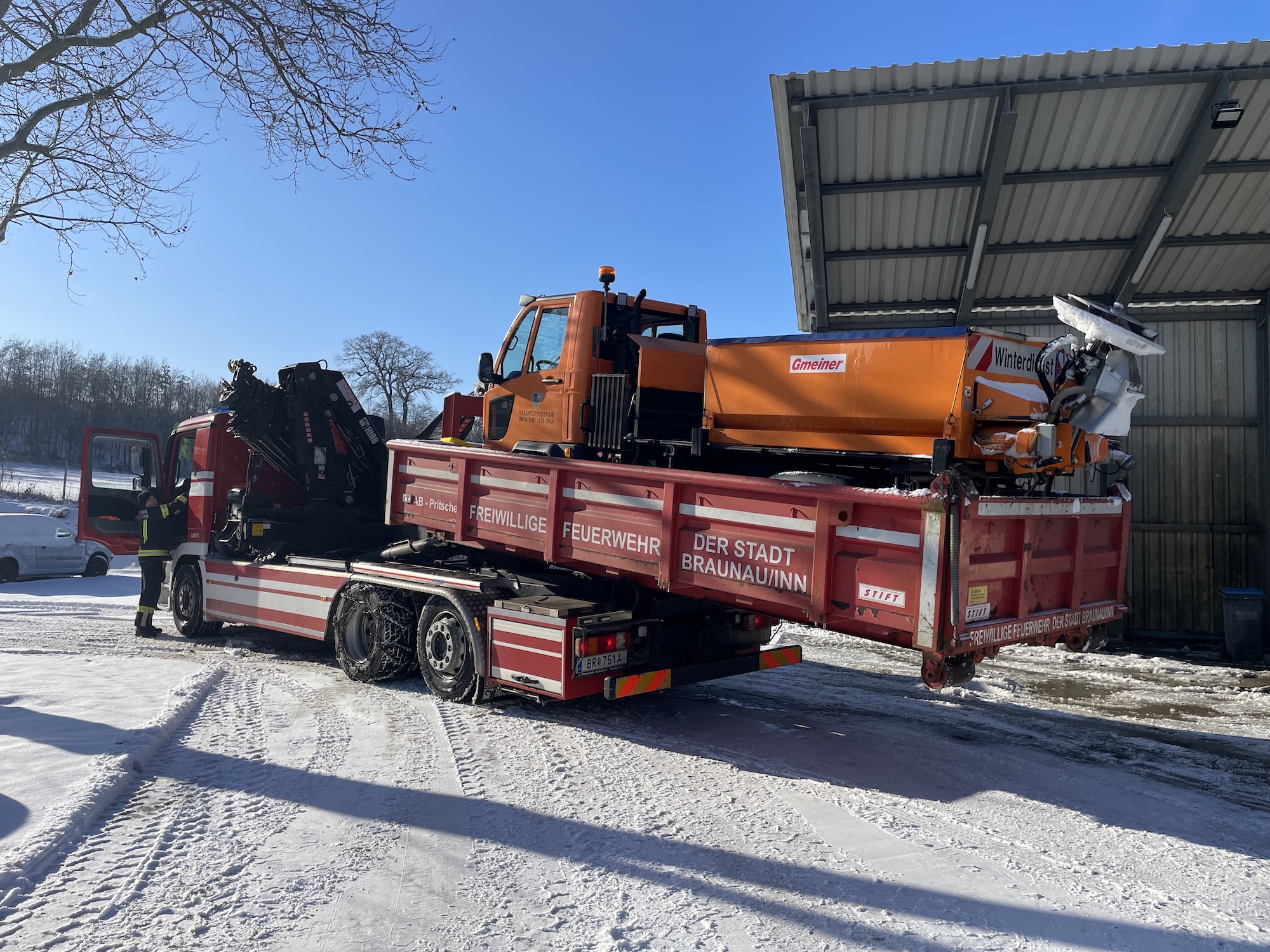 | Am 11.01.2026 wurde die Feuerwehr Braunau zu einem technischen Einsatz alarmiert. Grund dafür war ein technischer Defekt an einem Winterdienstfahrzeug, das seine Fahrt nicht mehr selbstständig fortsetzen konnte.