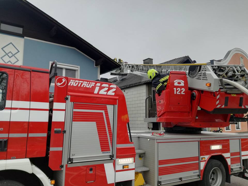Am 27.01.2018 um 12:10 Uhr wurde die Feuerwehr Braunau zu einem Wohnhausbrand nach Altheim gerufen. Die Drehleiter wurde zur Brandbekämpfung im Bereich des Dachstuhls eingesetzt. Die Dachkonstruktion wurde vom Korb der Drehleiter aus geöffnet bzw. entfernt. Somit konnten vorhandene Glutnester lokalisiert und bekämpft werden. |