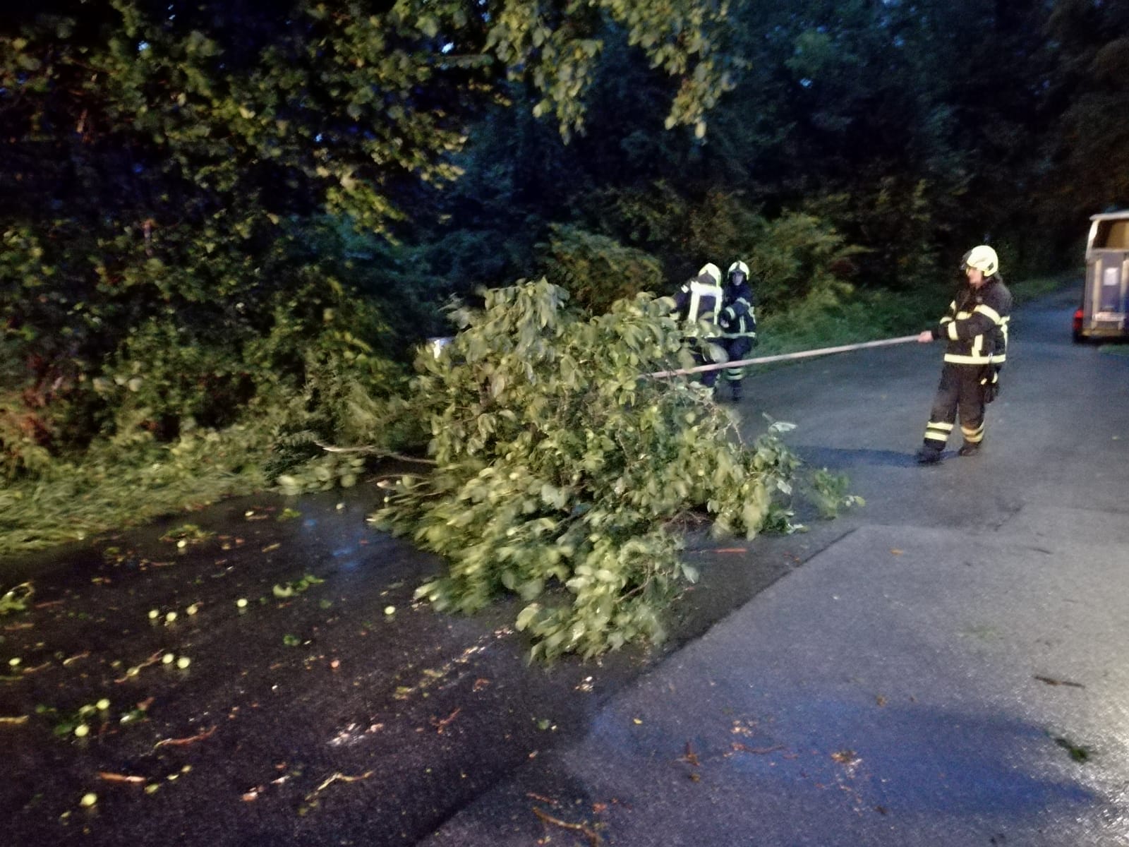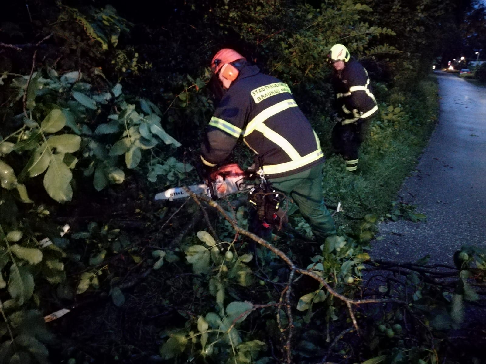| Beschreibung: | Nach einem kurzen aber heftigen Unwetter mit Starkregen und Sturmböen wurde die Feuerwehr Braunau am 13.08.2018 um 20:18 Uhr zu einem Sturmschaden alarmiert. Einige Äste drohten auf eine Straße zu stürzen. Mit einer Motorsäge wurden die Äste über die Drehleiter entfernt. Nach 50 Minuten konnte der Einsatz beendet werden. |