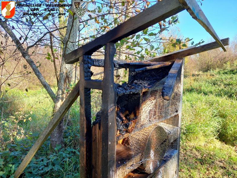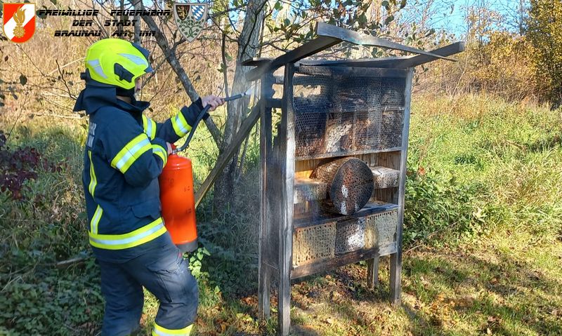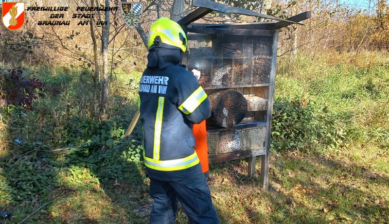 Brand eines Insektenhotels im städtischen Augut lautete die Alarmierung für die FF Braunau.