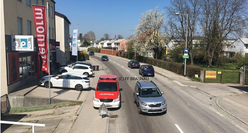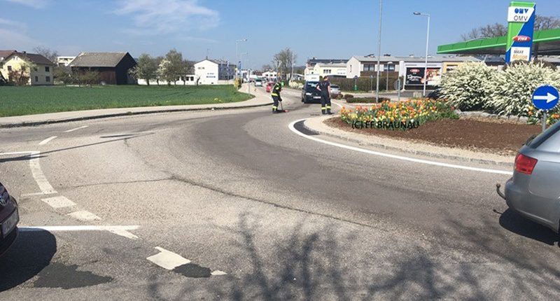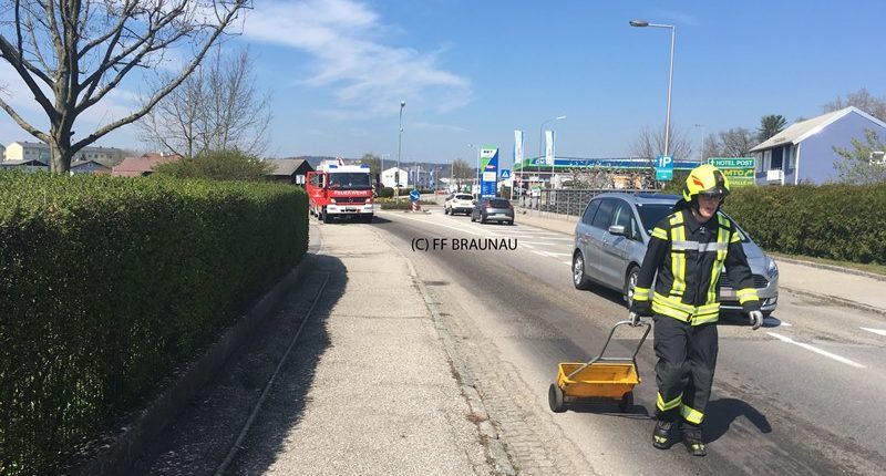 Durch die Erkundung des Einsatzleiters konnte eine längere Ölspur von der OMV-Tankstelle entlang der Salzburger Straße bis zur Auffahrt auf die B148 Richtung Ranshofen auf einer Fahrbahnseite festgestellt werden. Es wurde wahrscheinlich bei einem gerade getankten Fahrzeug vergessen den Tankdeckel zu schließen. Durch diesen Umstand dürfte die Dieselspur entstanden sein.