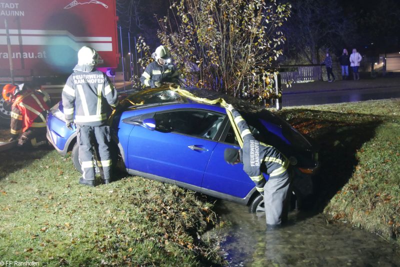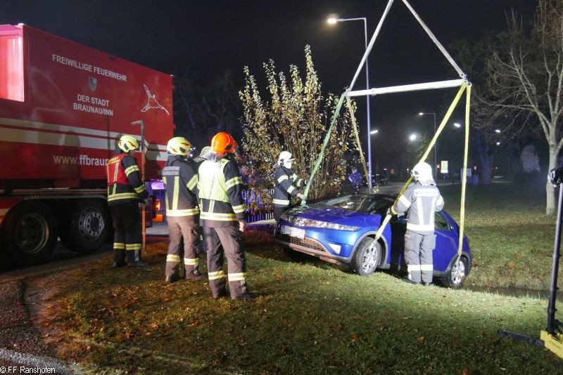 Die FF Braunau rückte mit 2 Mann zur Unterstützung mit Last 2 aus und konnte das Fahrzeug mittels Kran gemeinsam mit der FF Ranshofen bergen. Die weiteren Einsatzmaßnahmen wurden von der FF Ranshofen durchgeführt. Bericht FF Ranshofen