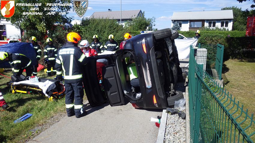 | Beschreibung: | „Verkehrsunfall, eingeklemmte Person, PKW überschlagen“ lautete die Alarmierung für die Feuerwehren Braunau und Ranshofen.